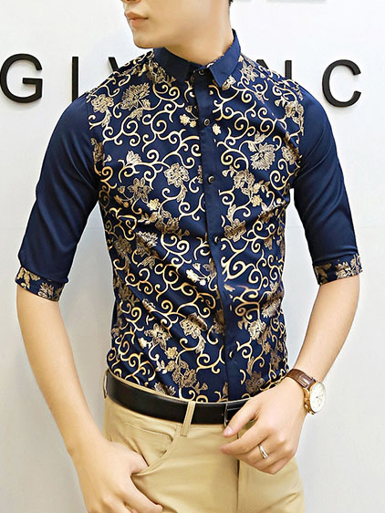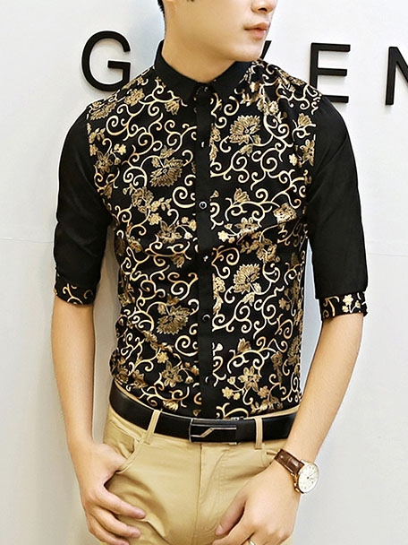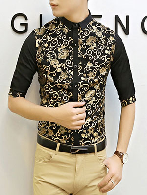 New Fashion Slim Half Sleeves Causal Shirts 907SJ-061-58-Black