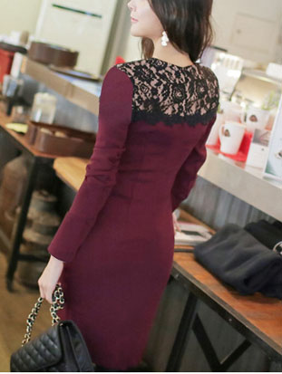 Fashion Lace Sheath Knee-Length Plain Womens Dresses 023-141220009