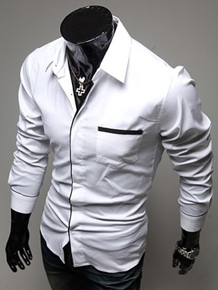 White New Fashion Men Slim Long Sleeves Shirts M/L/XL/XXL 1215SJ-9006w