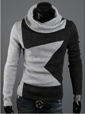 Gray New Fashion Men Slim High Neck Long Sleeves Knitting Sweater M/L/XL/XXL 700SJ-MJ20-50g