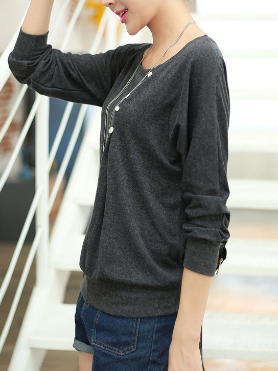 Women Fashion Round Neck Long Sleeve Shirt FLA1089-3095-26-Dark Gray