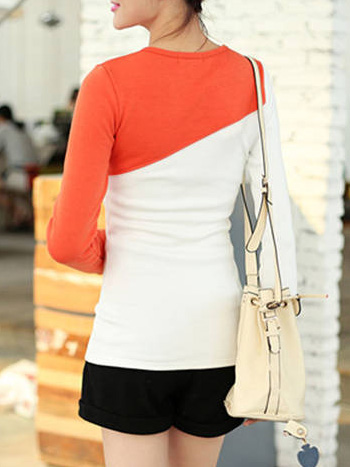 Women Fashion Round Neck Long Sleeve Shirt FLA1089-3101-29-Orange