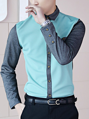 New Fashion Slim Long Sleeves Causal Shirts 907SJ-020-38-Light Green