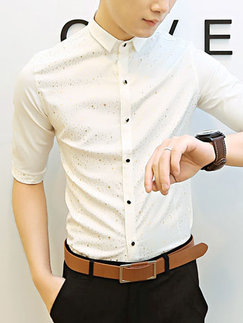 New Fashion Slim Half Sleeves Causal Shirts 907SJ-060-58-White