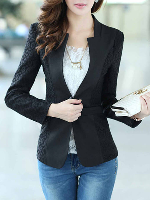 Fashion Cotton Korean Style Plain Womens Suit Jackets FLA1089-3088-68-Black