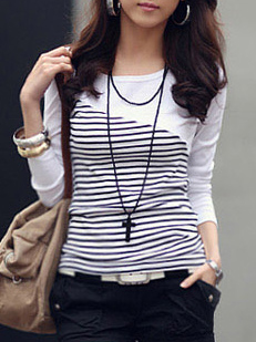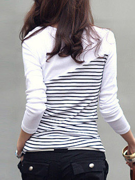 Women Fashion Round Neck Long Sleeve Shirt FLA1089-3096-25-White