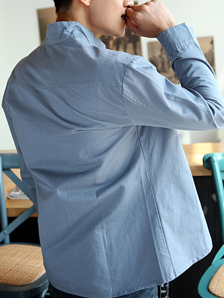 Fashion Korean Style Slim Long Sleeves Causal Shirts 907SJ-JK01-43-Sky Blue