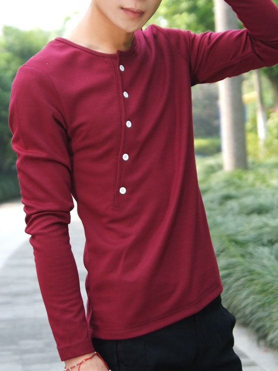 Fashion Korean Style Slim Long Sleeves Causal Shirts 907SJ-T58-43-Wine