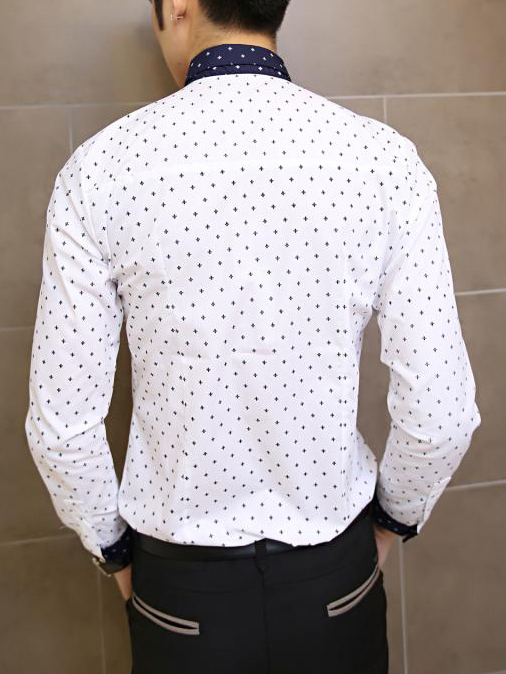 Fashion Korean Style Slim Long Sleeves Causal Shirts 907ASJ-C26-48-Navy Blue