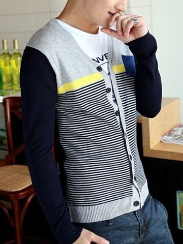 New Fashion Korean Style Round Neck Men Sweater 907ASJ-KS05-48-Yellow