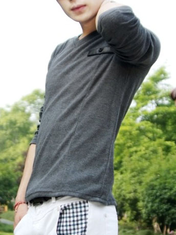 New Fashion Slim Long Sleeves Causal Shirts 907ASJ-T01-33-Dark Gray