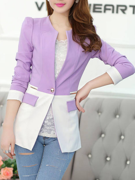 New Fashion Cotton Plain Womens Casual Suit Jackets FLA1131-A-6018-53-Blue